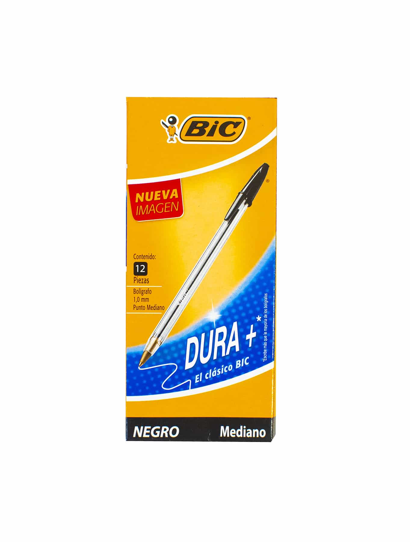 Lapicero - Bic - Negro - Punta Mediana - Dura+ - Caja de 12 Unidades